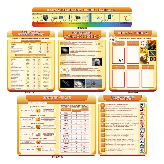 Стенди допомагають учням швидше засвоювати матеріал, постійно мати перед очима важливу інформацію та правила безпеки. Виготовлені з якісних і безпечних матеріалів, з чітким і яскравим друком. У нашому магазині — великий асортимент стендів з фізики для школи.
