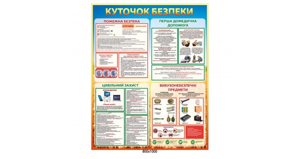 А вже в старших класах до них додалися правила цивільної безпеки: як діяти у випадку поранення, що робити під час землетрусу, пожежі або повені, як реагувати під час аварії. Основи першої медичної допомоги повинен знати кожен з нас – це може врятувати життя людині, коли кожна секунда є важливою, а швидка допомога просто не встигає приїхати на місце надзвичайної ситуації. Компанія Країна-стендів разом із спеціалістами розробила кілька готових шаблонів для стенду в кабінет безпеки життєдіяльності, на яких детально одповідається найголовніше, о чим потрібно пам’ятати. Різнокольорові ілюстрації та структурована інформація допомагає не тільки швидко запам’ятати усі правила, а і відтворити їх на практиці у разі гострої необхідності.