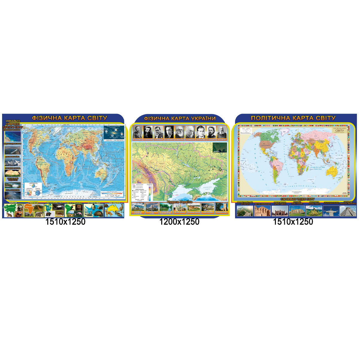 Стенди для кабінету географії з нанесеною на них картою – чудове та економічне вирішення цього питання. Замовити такий стенд буде набагато дешевше, ніж купувати карту в спеціалізованому магазині. А от чіткість нанесення зображення та якість матеріалів приємно вас вразять.